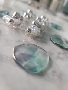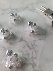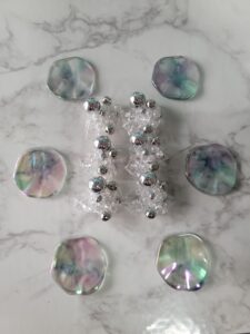このシャボン玉のような色合いのパーツを丸カンで繋げていきます♪
