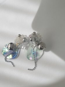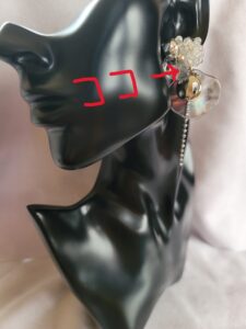 ここにまずはシャボン玉のようなカラーの波パーツを丸カンでつけます